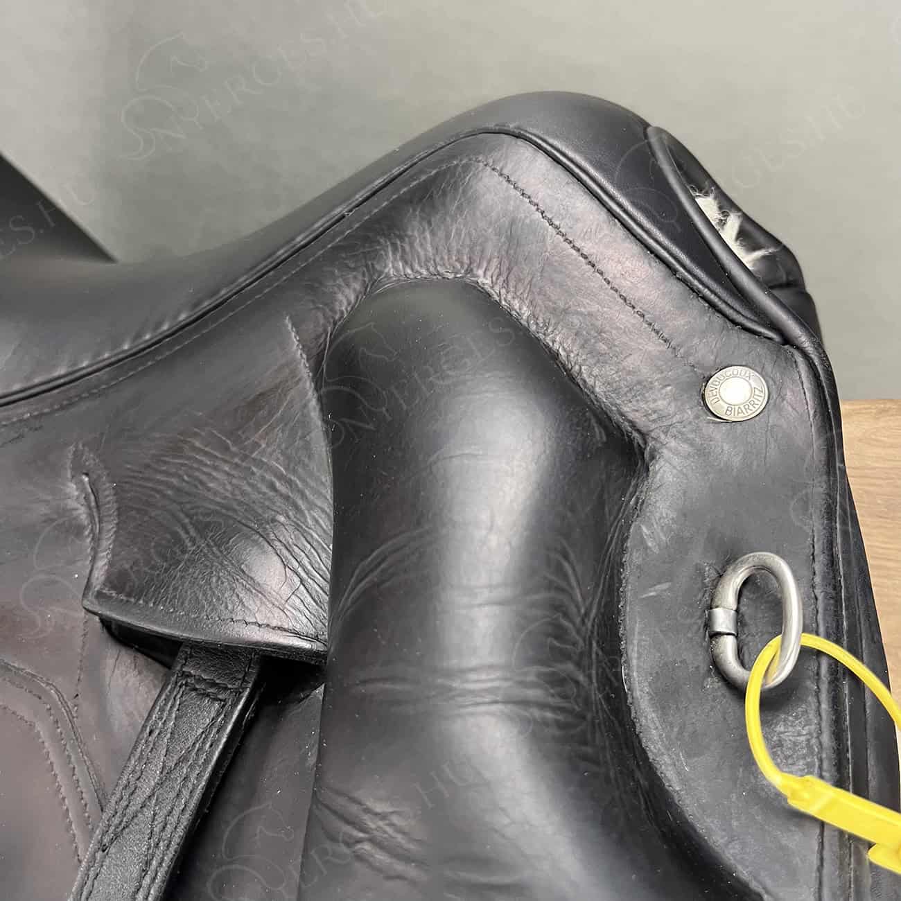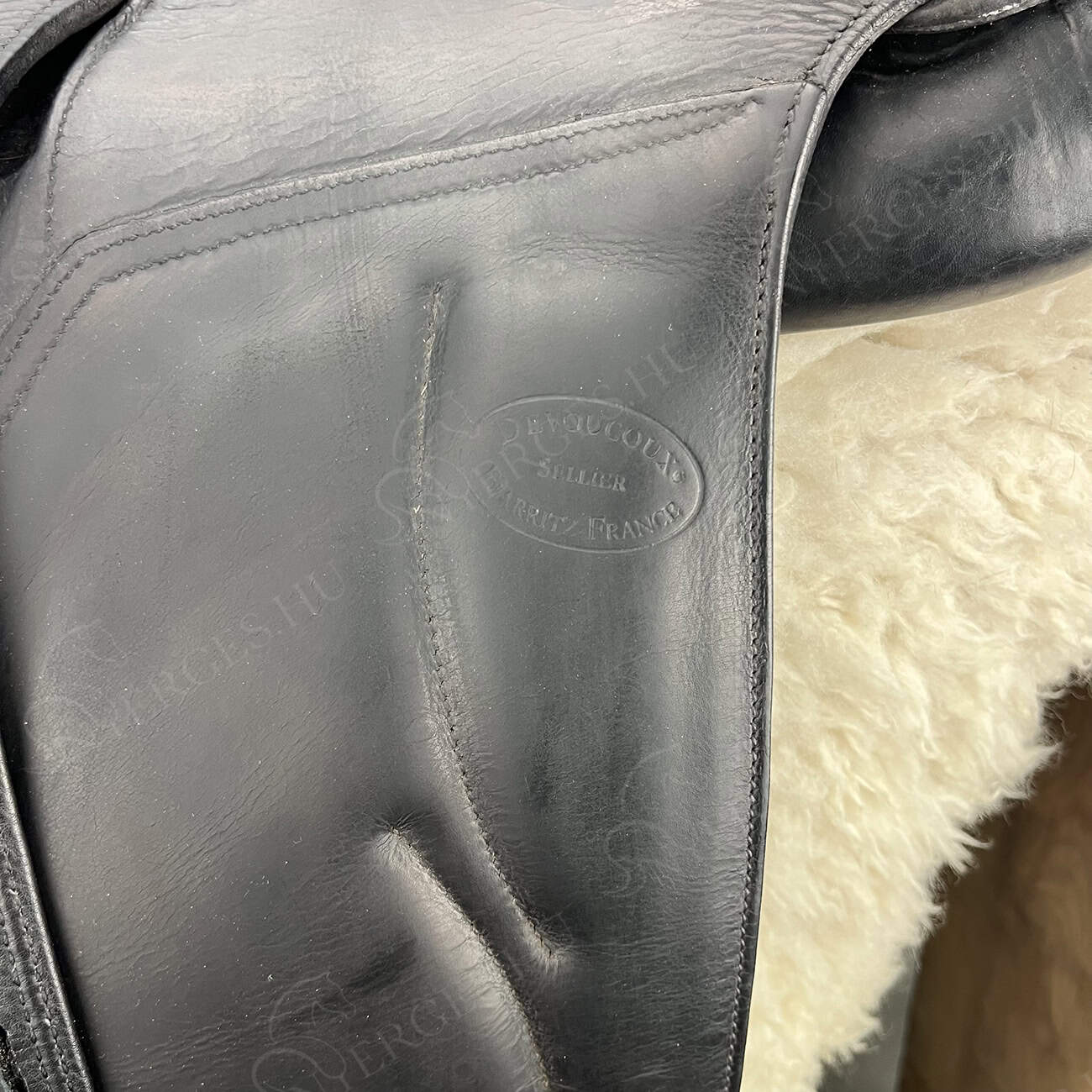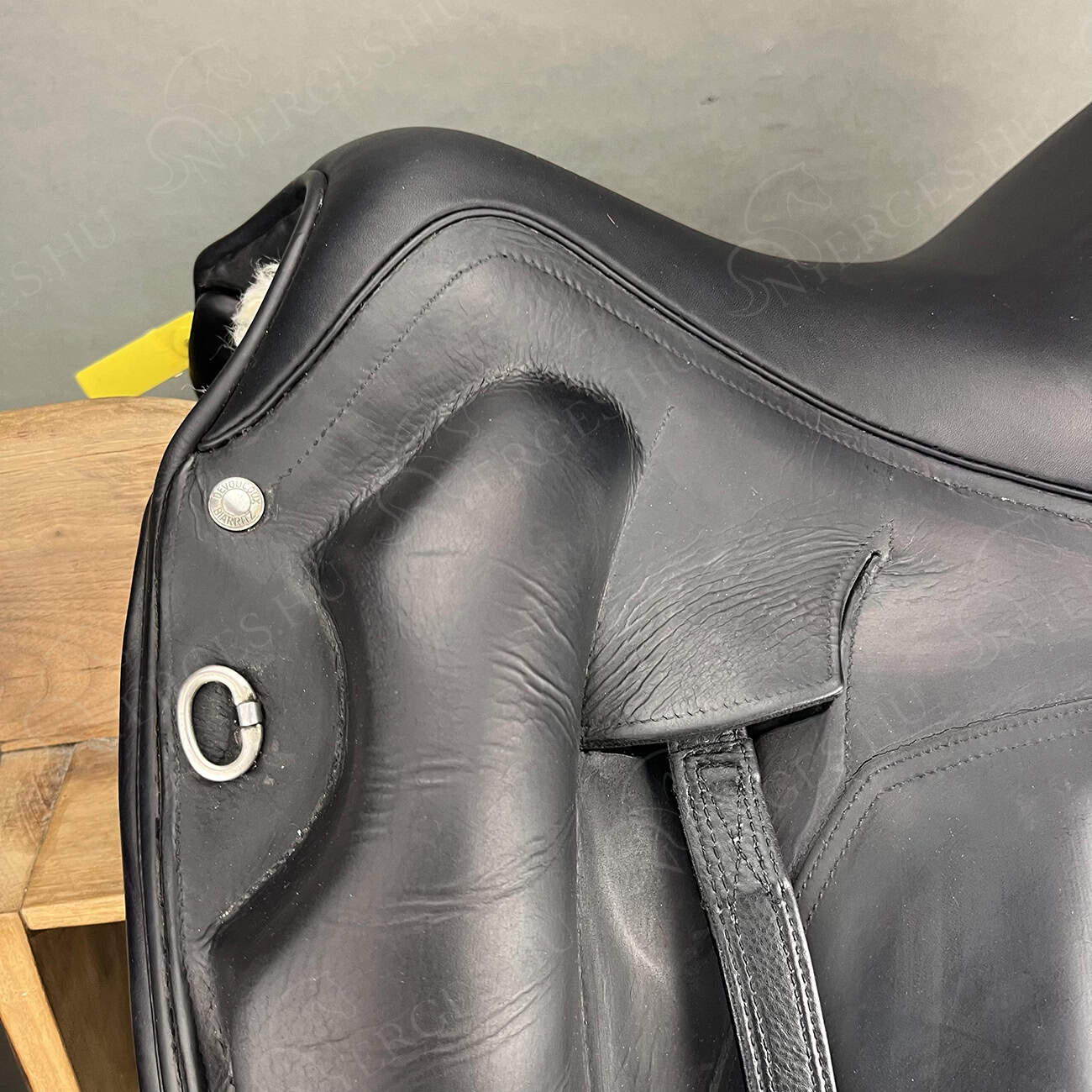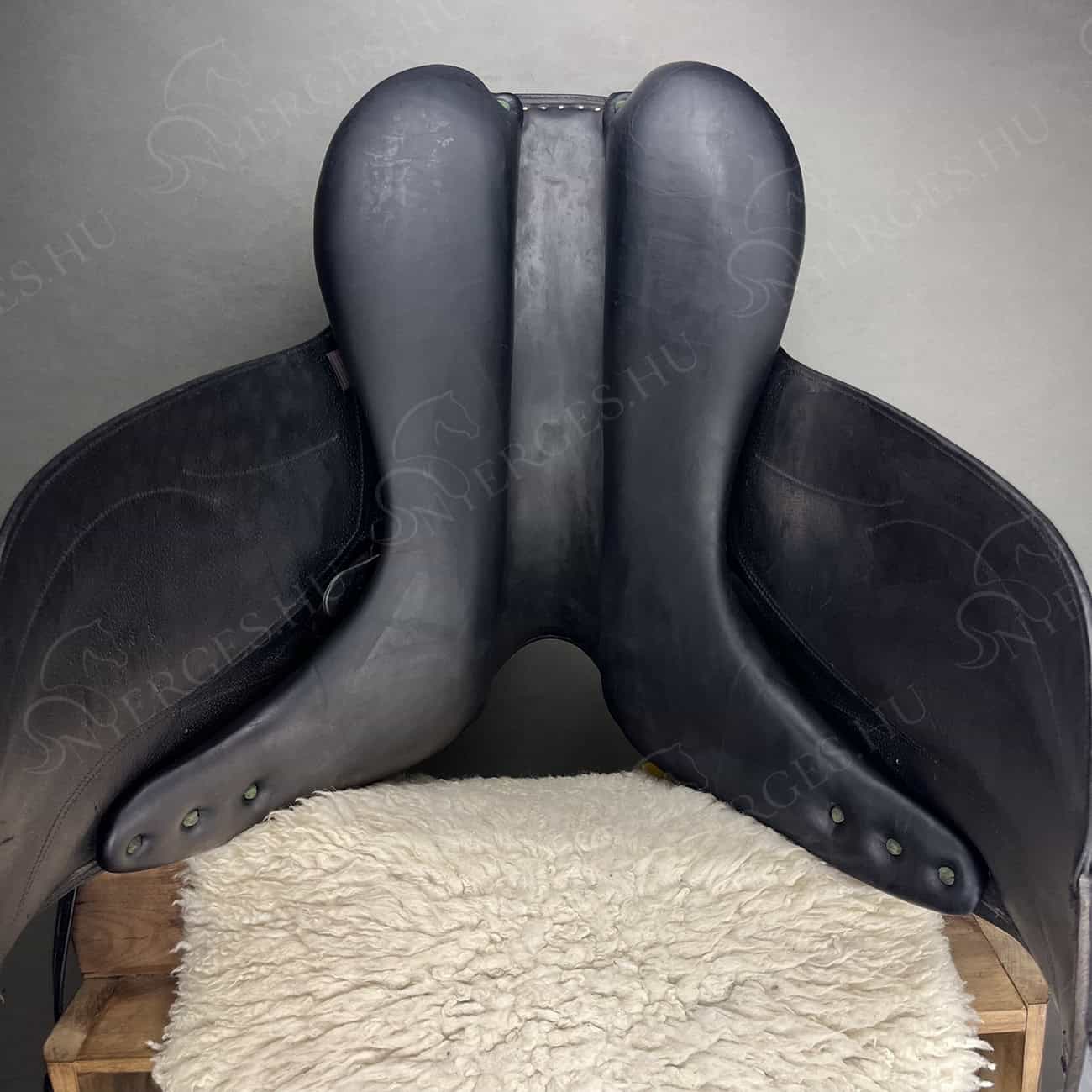 Gyönyörű állapotú, igazán népszerű és felsőkategóriás francia díjlovasnyereg. Monoszárnyas kialakítás, nagy combtámasszal, mély ültetéssel, tapadós, minőségi bőrből. Beleírt méret 18, azonban a francia nyergek jellemzően kisebbek, így 17’5-s méretre ajánlom inkább.  A nyereg tulajdonságai: