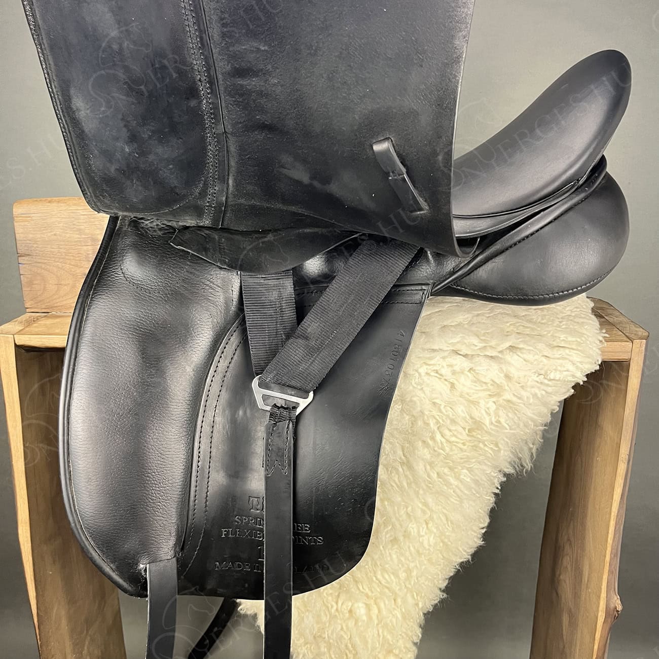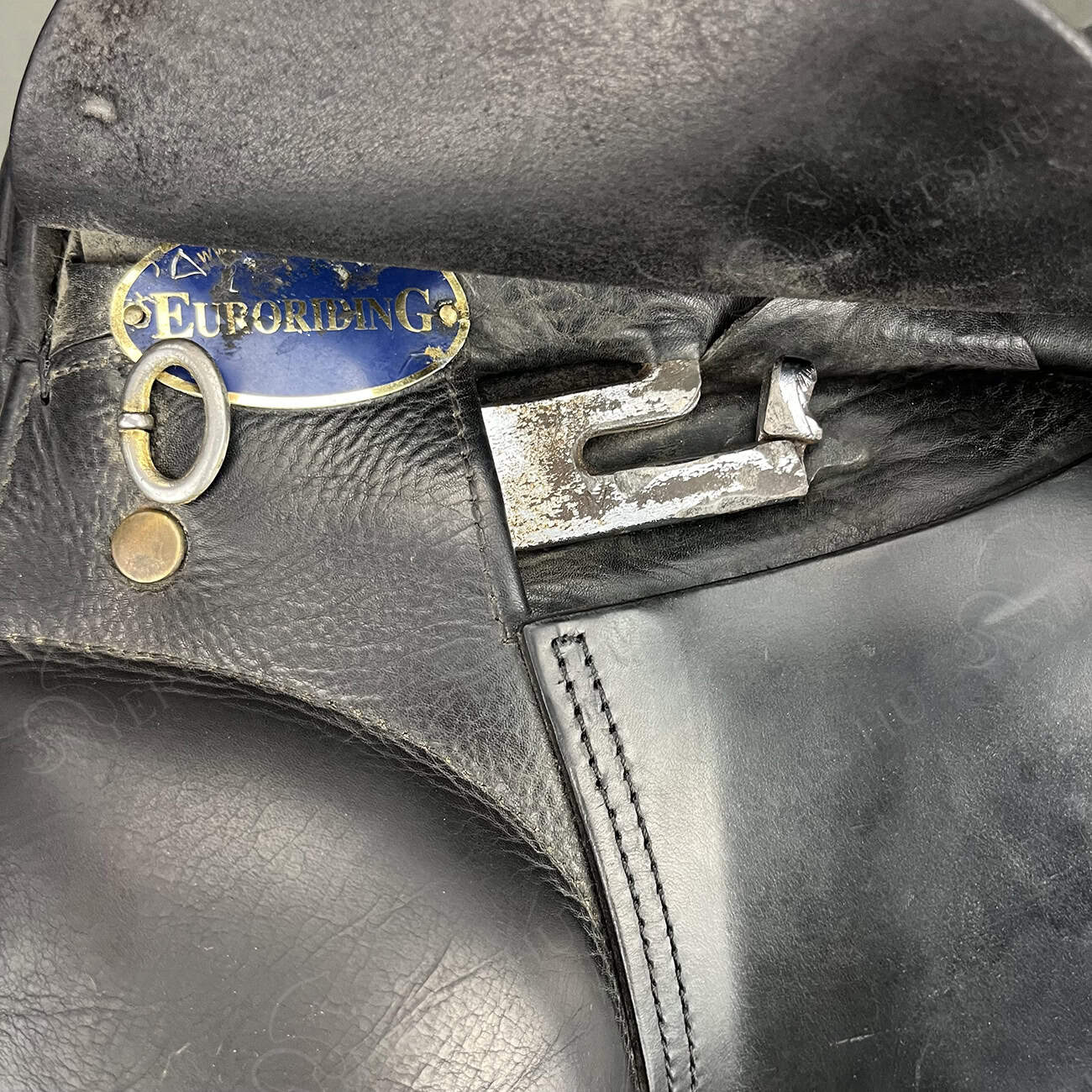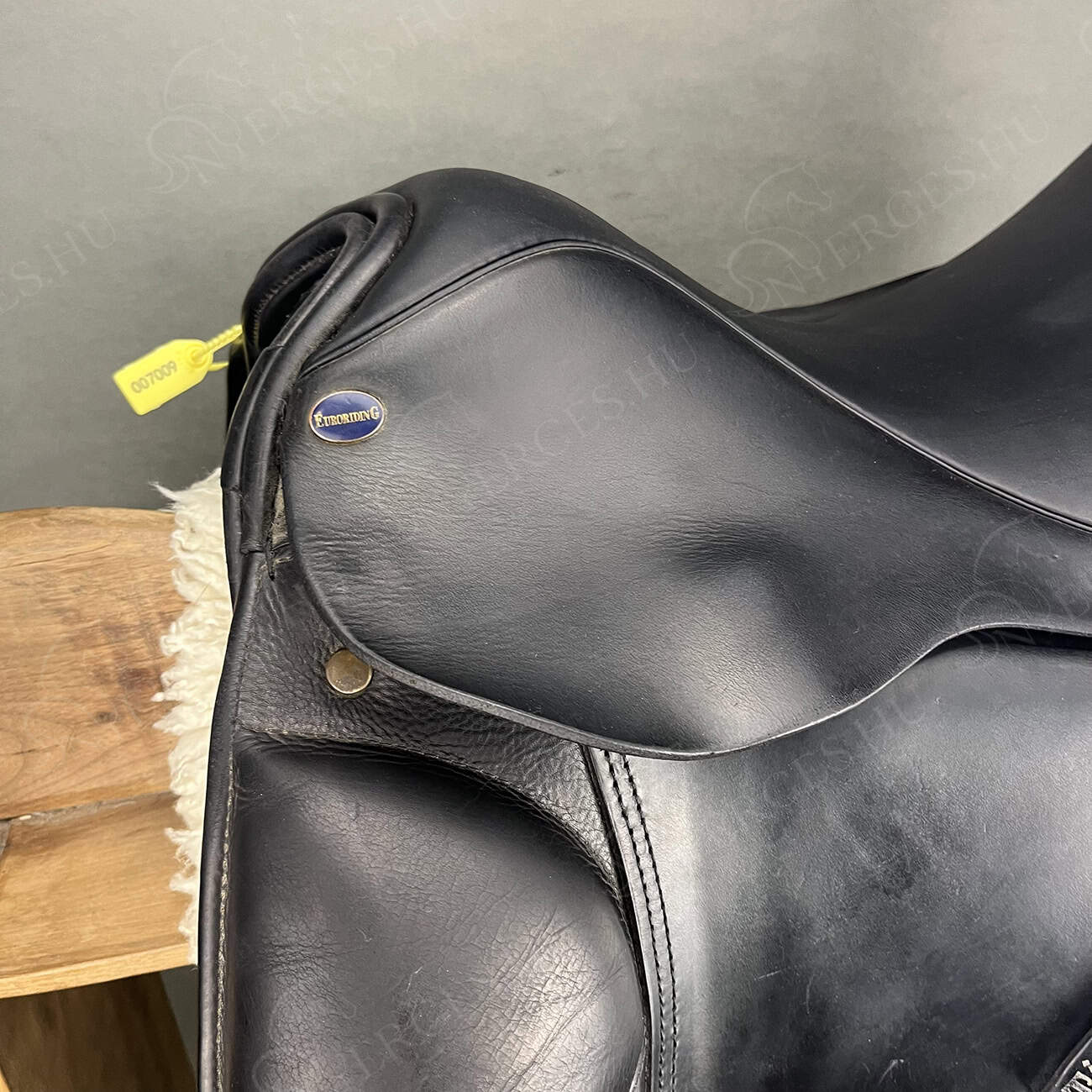 Igazán közkedvelt, Euroriding Titán II-es modell, fotel mély ültetésű, felső nyeregszárnyon elhelyezett formált combtámasszal, széles gerinccsatornával. Stabilan, mélyen ültető és nagyon kényelmes, vastagon tömött nyereg. Szerkezete és bőre is ép, puha, általános használati nyomok vannak rajta. Magas marú lóra passzol. A nyereg tulajdonságai: