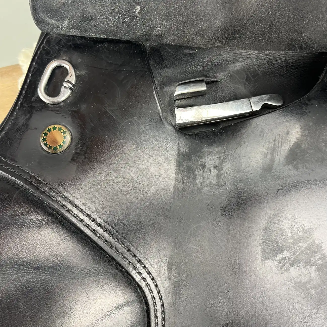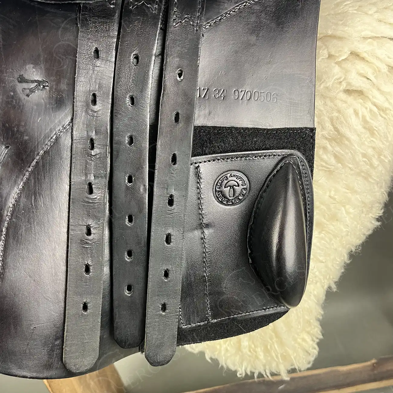 Prestige ugrónyereg, amely a jó kialakítású ültetésnek köszönhetően kiváló érzést és pontos segítségadást biztosít ugrás közben is. A nagy  térd- és vádlitámaszok stabil lábtartást adnak. Szerkezete ép, bőre puha, általános használati nyomok elvétve vannak rajta. Beleírt méret 34, azonban átlagos 32-es méretnek felel meg.  Vádlitámasza áthelyezhető, szedehető. Térdtámasza kifejezetten nagy, nem az eredeti támasza. Puha, kényelmes nyereg. A nyereg tulajdonságai: