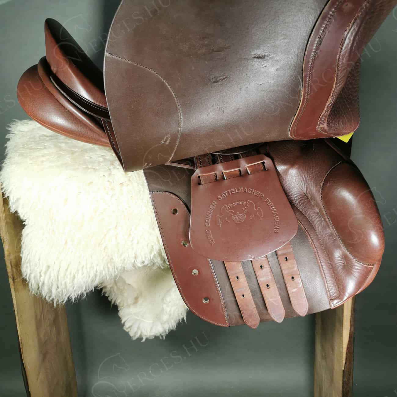 Újabb generációs, patika állapotú Sommer ugrónyereg. Bőre, tömései, szerkezete újszerű, szép állapotú. Kényelmes, stabilan ültető darab. A kengyelszíj vonalában felszíni színkopás van csak rajta. Marvasa hidegen állítható, lóra igazítható nyereg!A nyereg tulajdonságai:• Közepesen mély ültetés