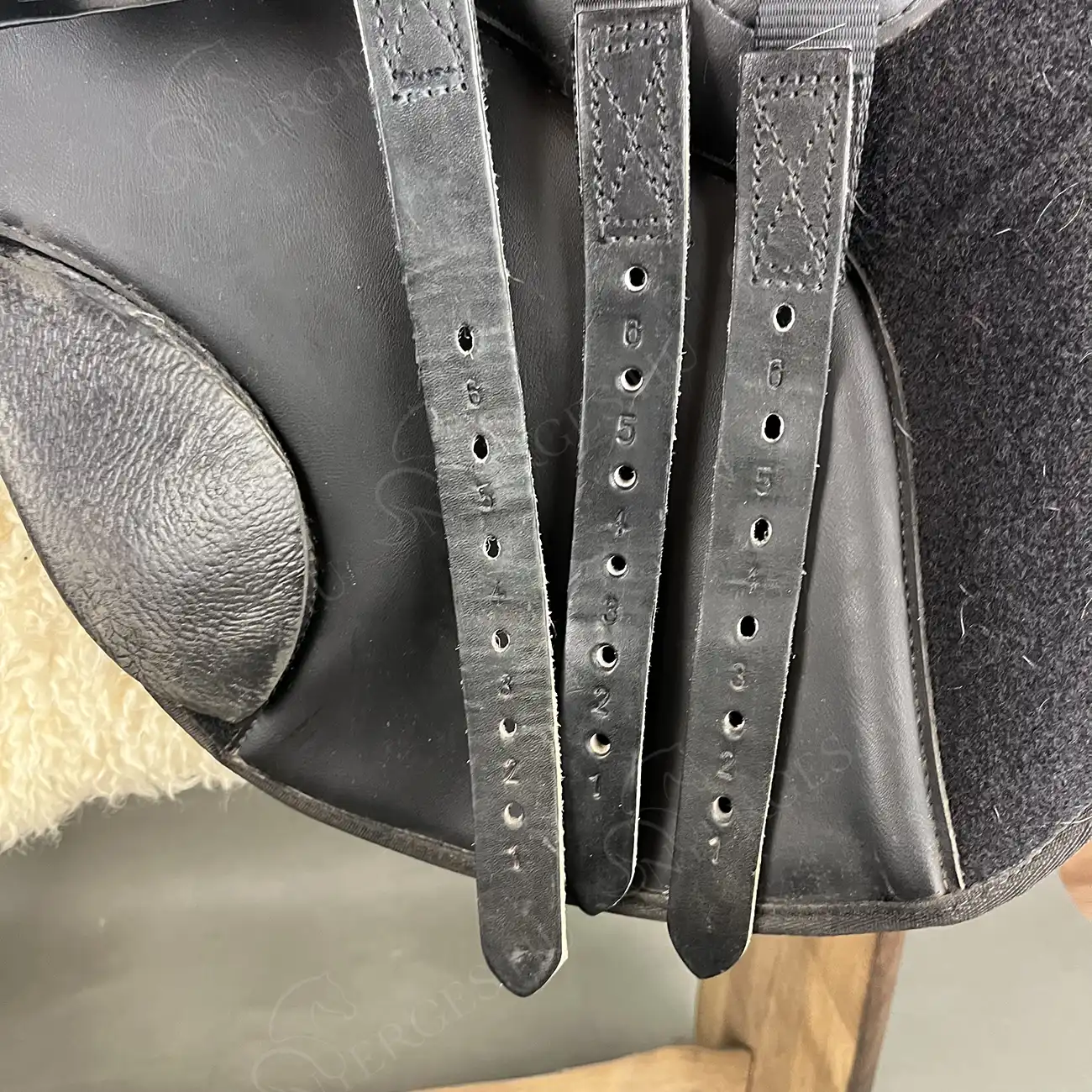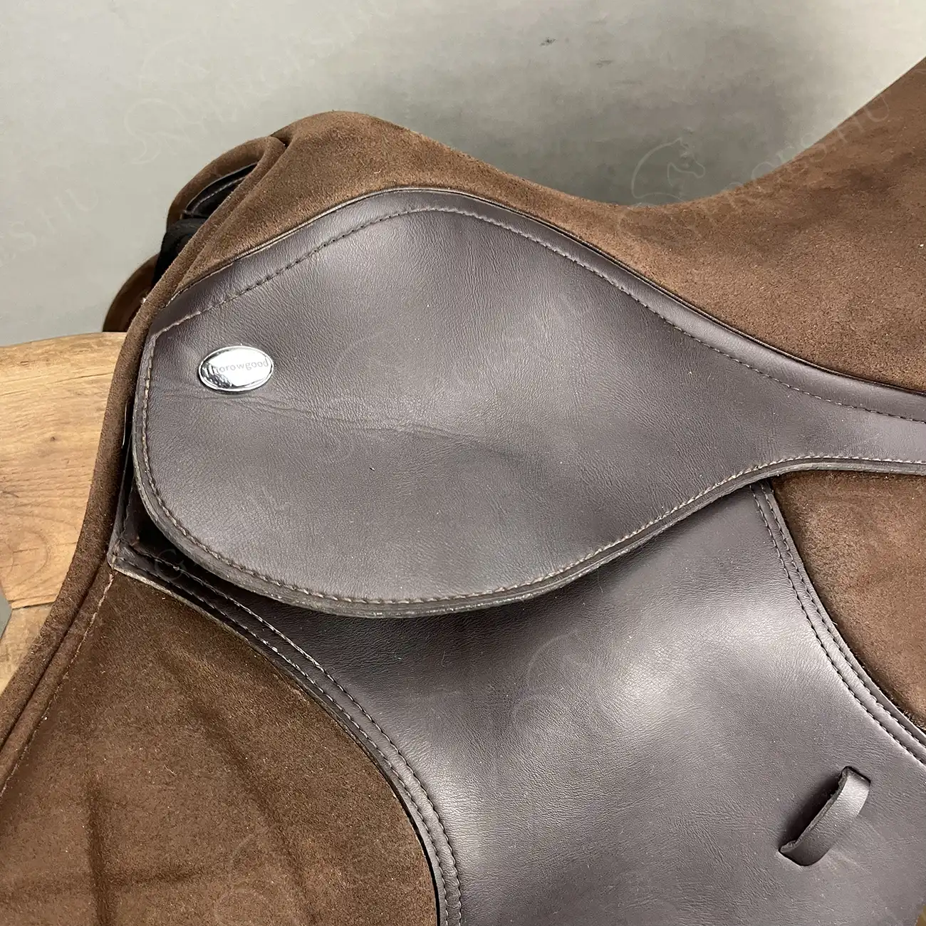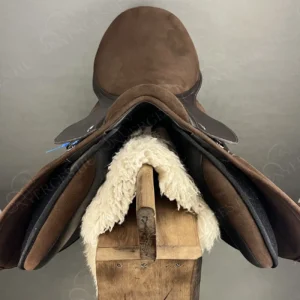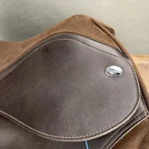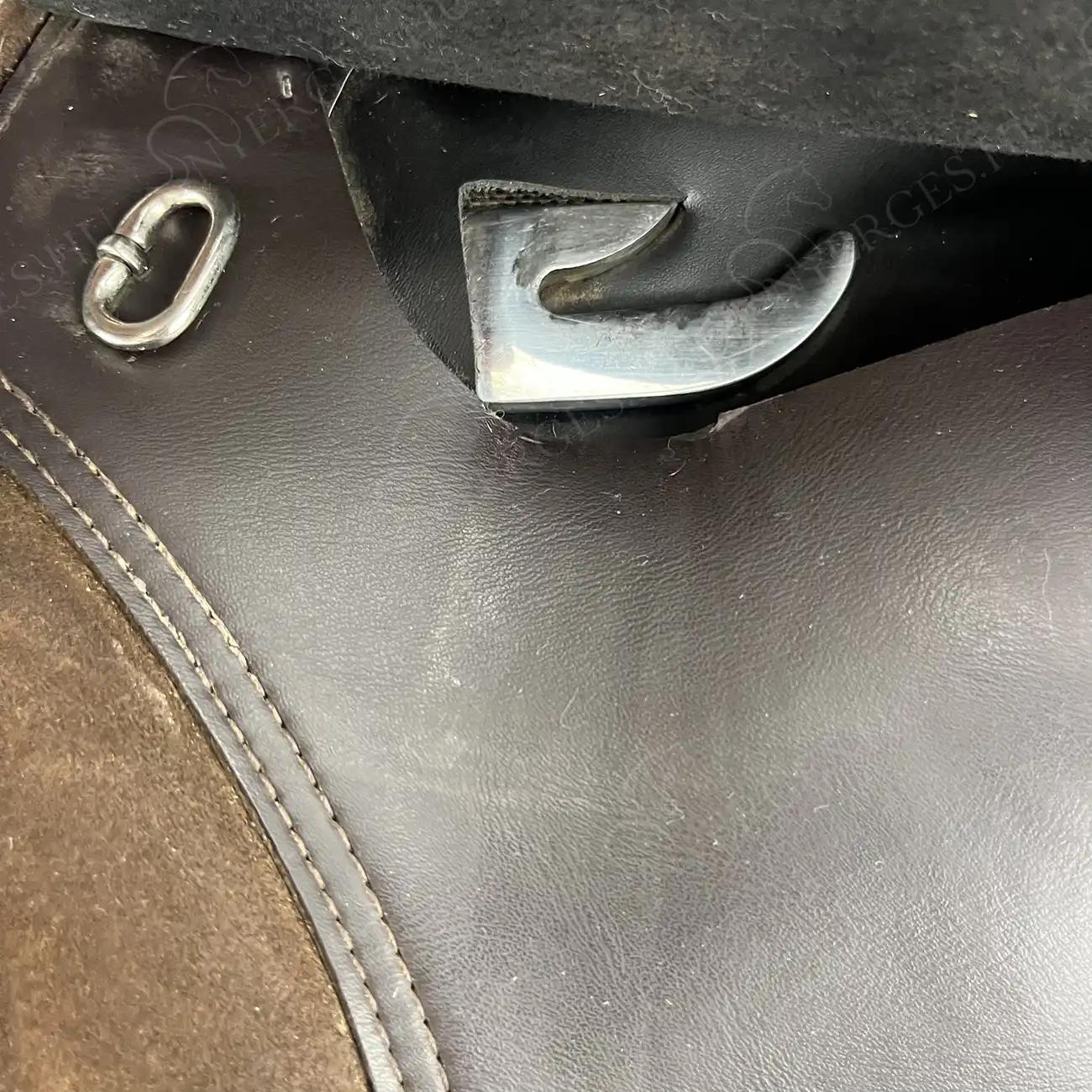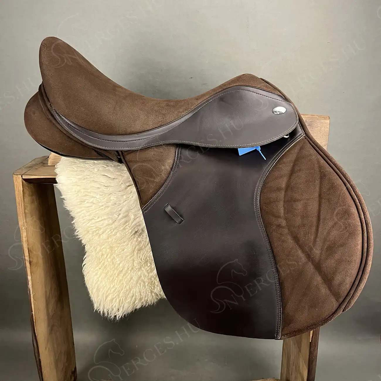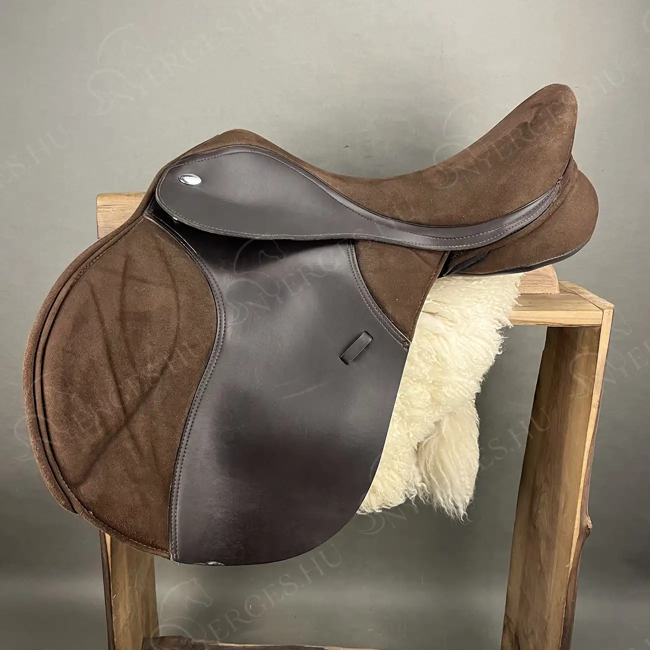 Angol gyártmányú, barna színű univerzális nyereg. Cserélhető marvassal rendelkezik. Vádlitámasz van rajta, térdtámasz egyszerűen tépőzárral tehető rá. Szerkezete és anyaga is ép, puha, igényes állapotú. A nyereg tulajdonságai: